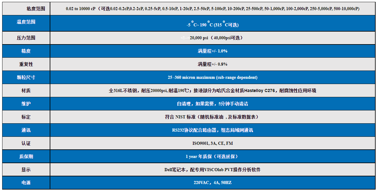 高壓粘度計(jì)(VISCOlab PVT)技術(shù)參數(shù):